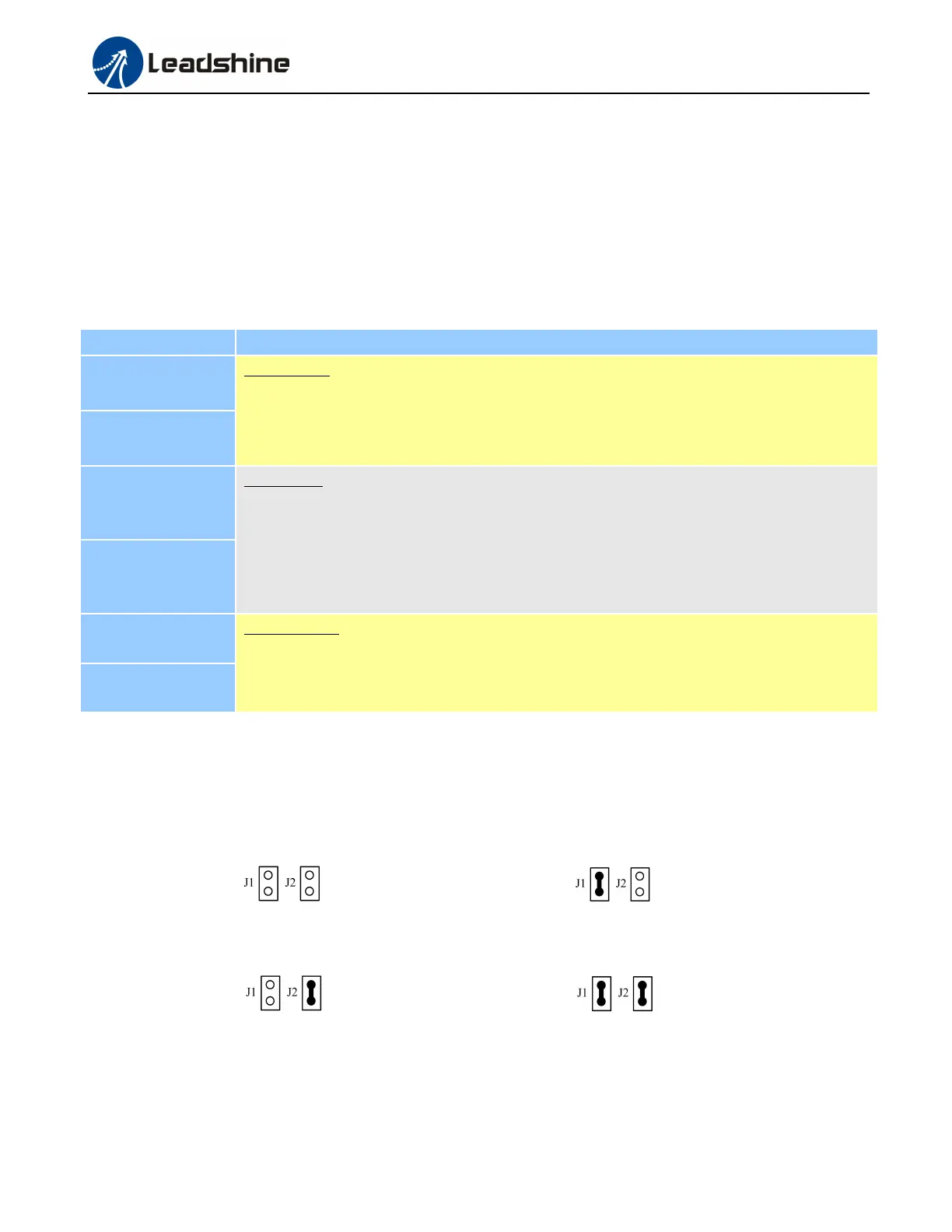 Figure 2: J1 and J2 jumper Settings