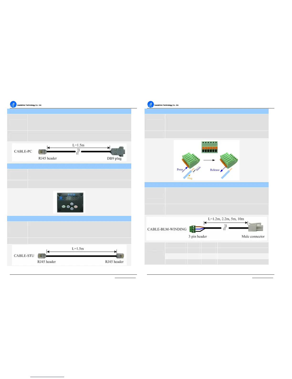 Optional Accessory, Leadshine provides 1.2m, 2.2m, 5m, 10m cable for user