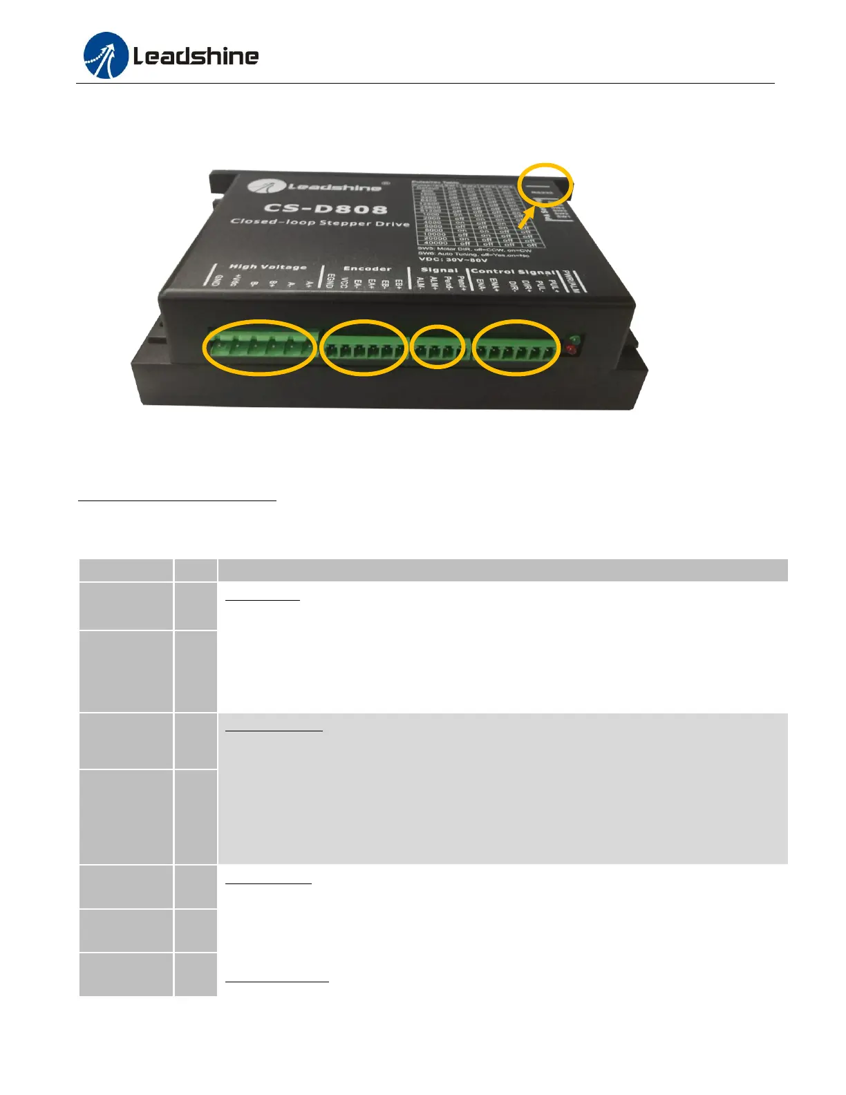 A CS-D808 closed loop stepper drive has 5 connection blocks from P1 to P5 (see figure 2).