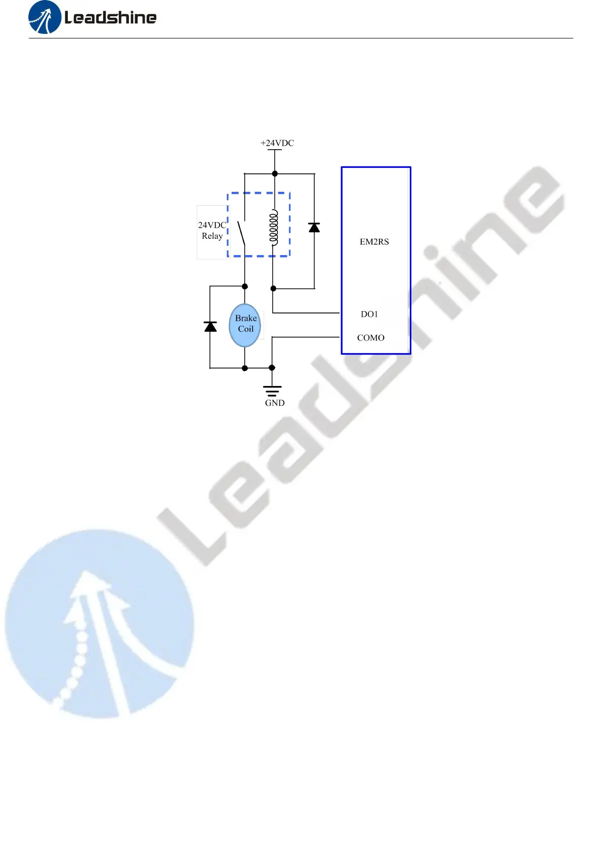 Use PC software (from Leadshine or Controller or PLC vendor) to configure this output as a BRAKE CONTROL output. In