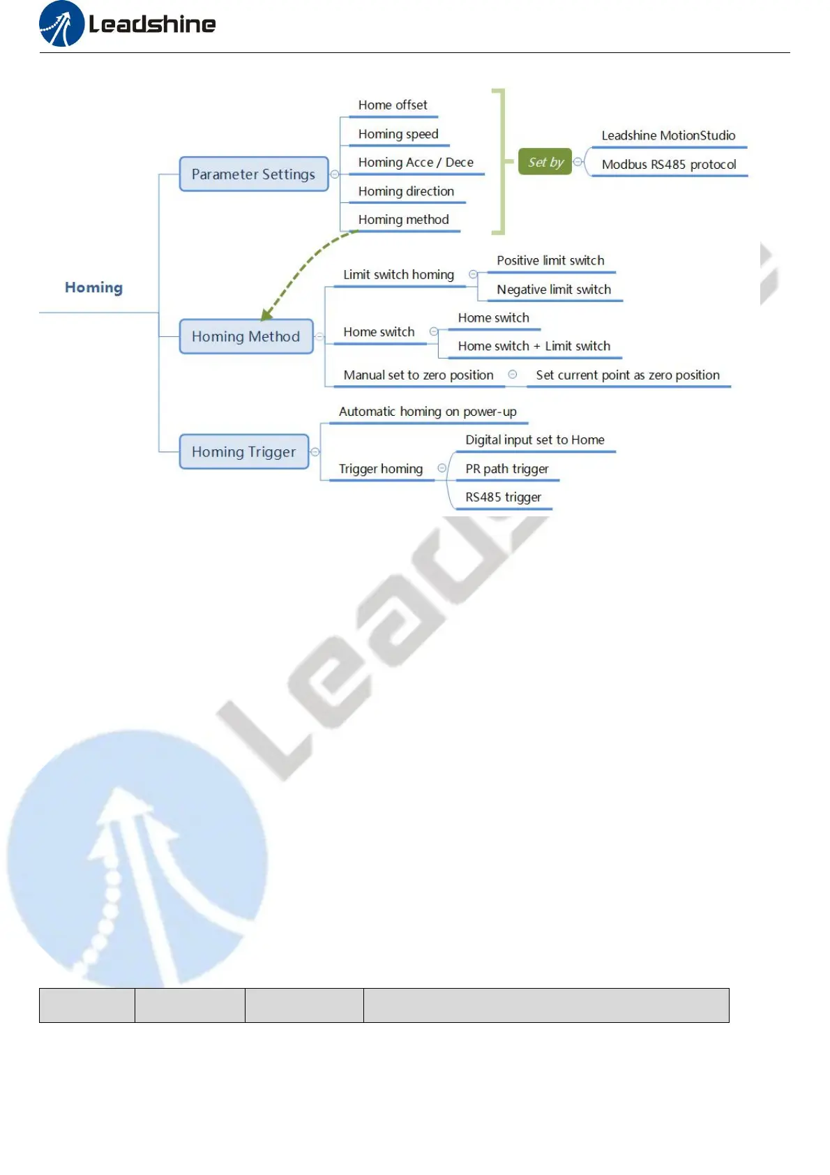 Trigger to homing: when IO port set to Home function triggered by external level, or trigger via Modbus RS485.
