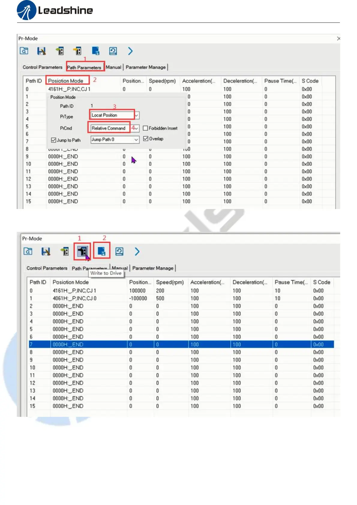 the path of PR0. If click PR1 in step 4, the motor will be forced to switch to the path of PR1. Click step 3 to stop motor.