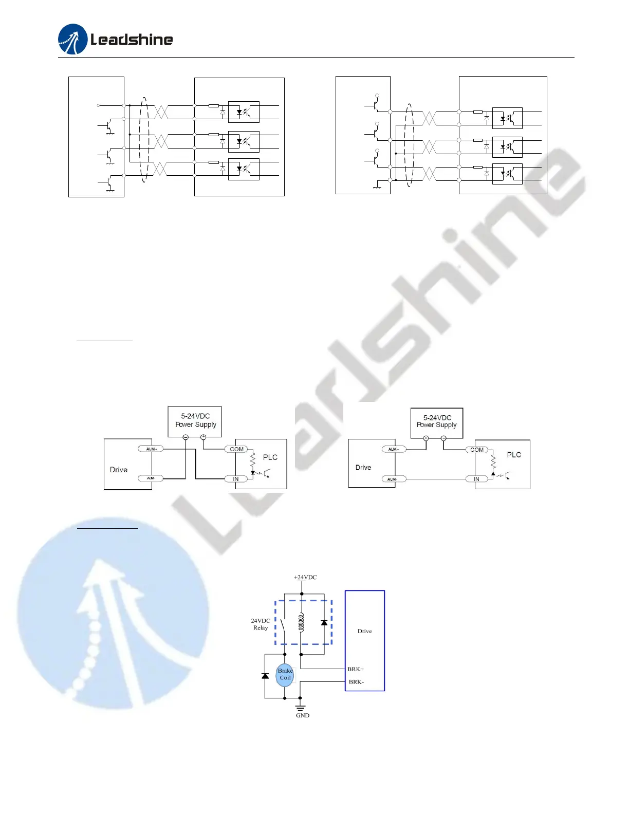 It is recommended to connect a fly-wheel diode in parallel to a 24VDC relay and brake coil connection. Refer to the