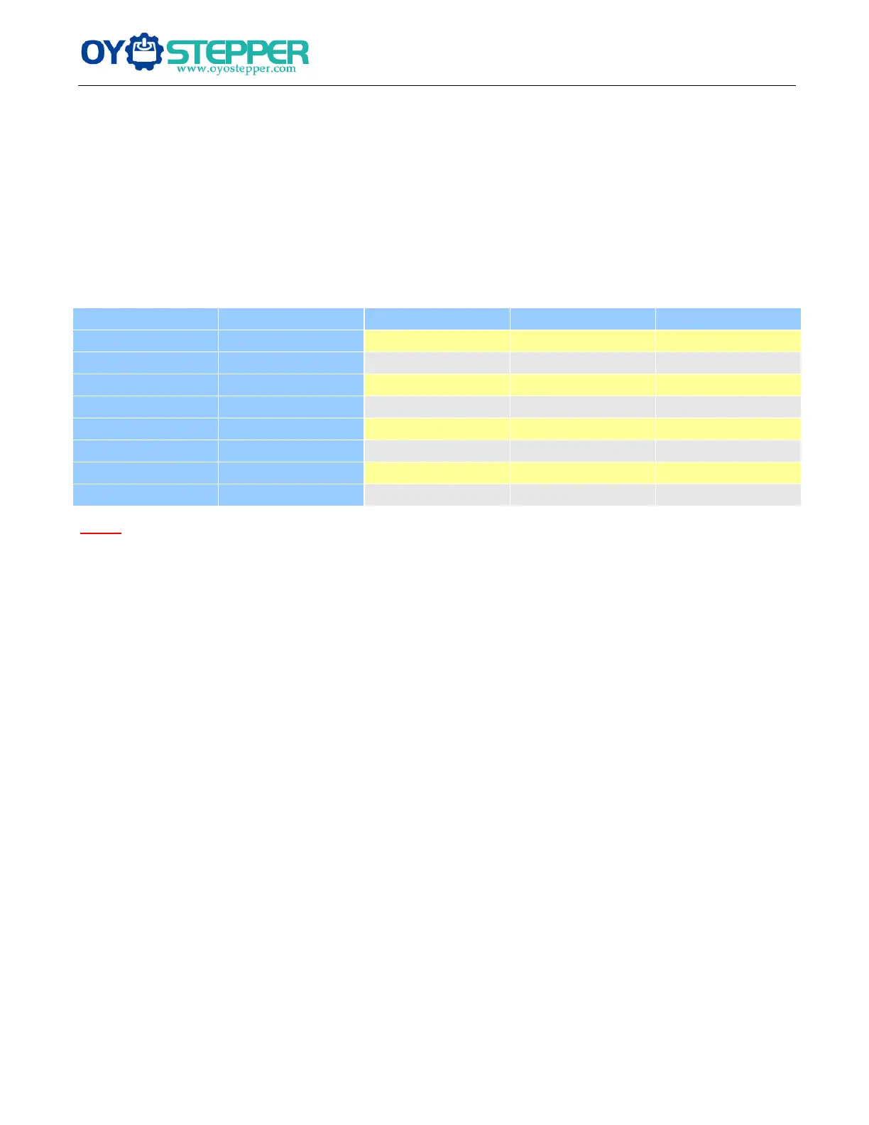 Notes: Due to motor inductance, the actual current in the coil may be smaller than the dynamic current setting,
