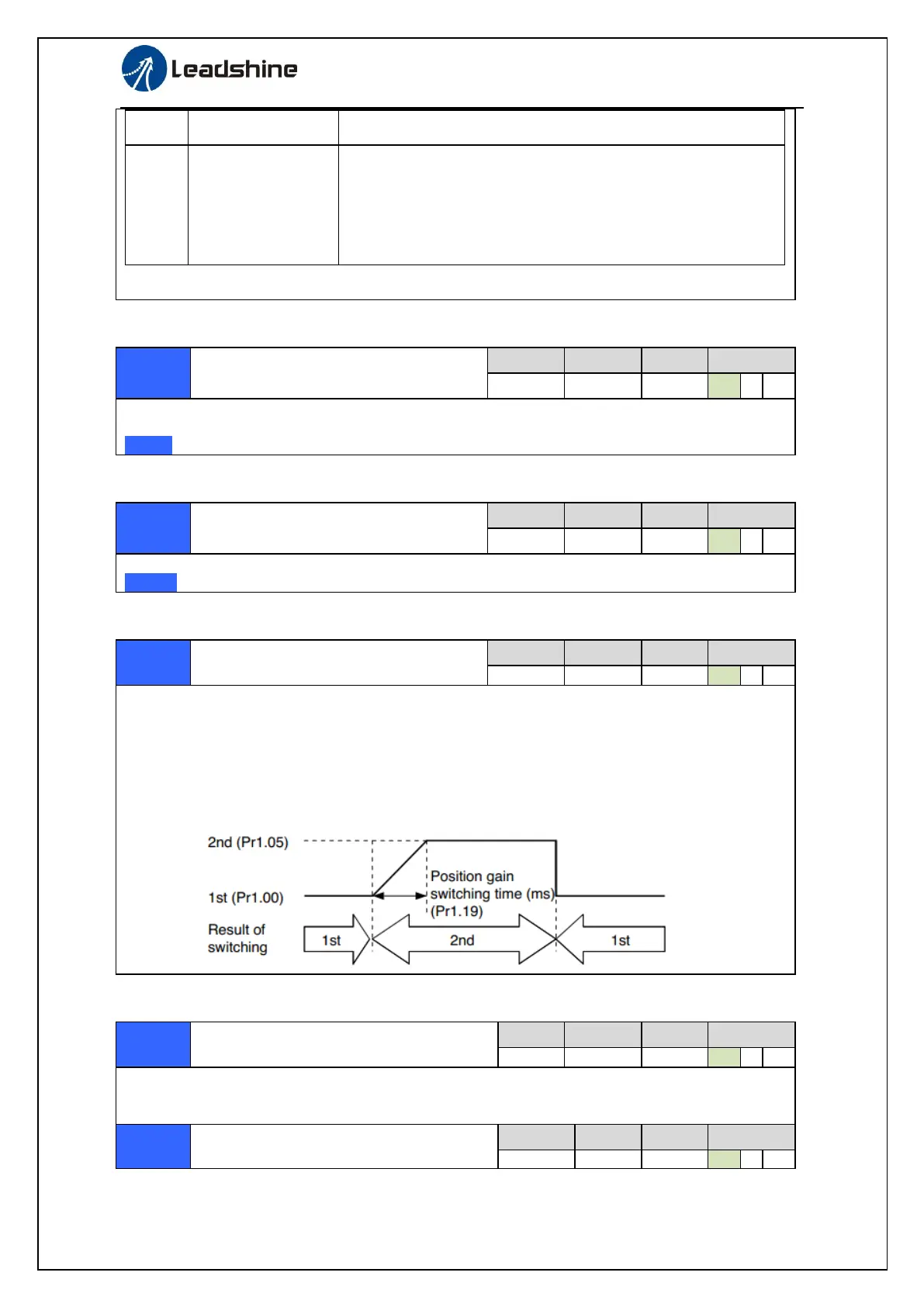 vibration. By adjusting Pr1.19 position gain switching time, increasing rate of the position loop gain