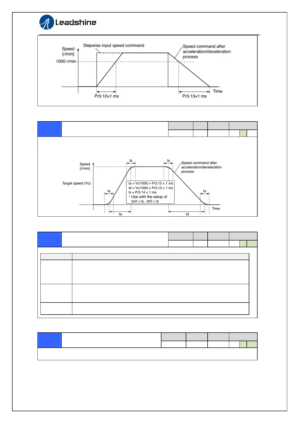 Deceleration time (ms)=Vc/1000 *Pr3.13 *1ms