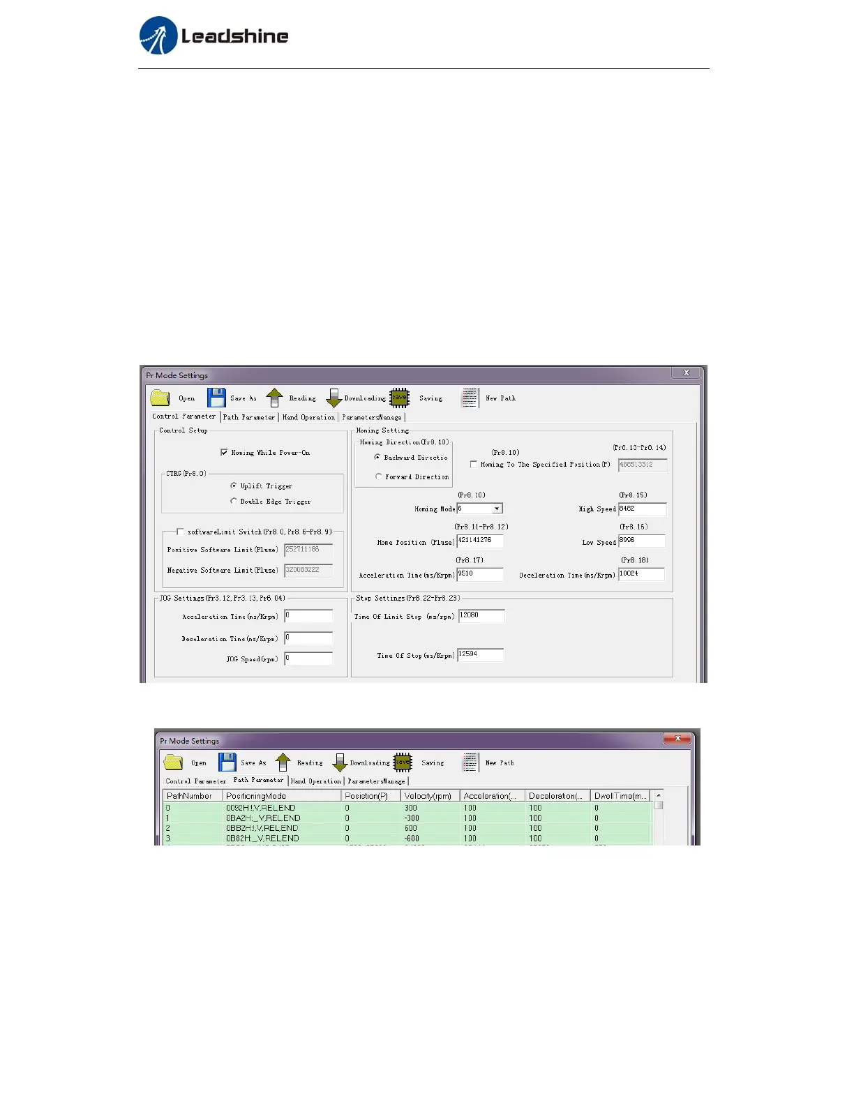 4. Setting up the PR positioning path parameters through upper computer's " Pr-MODE " interface,
