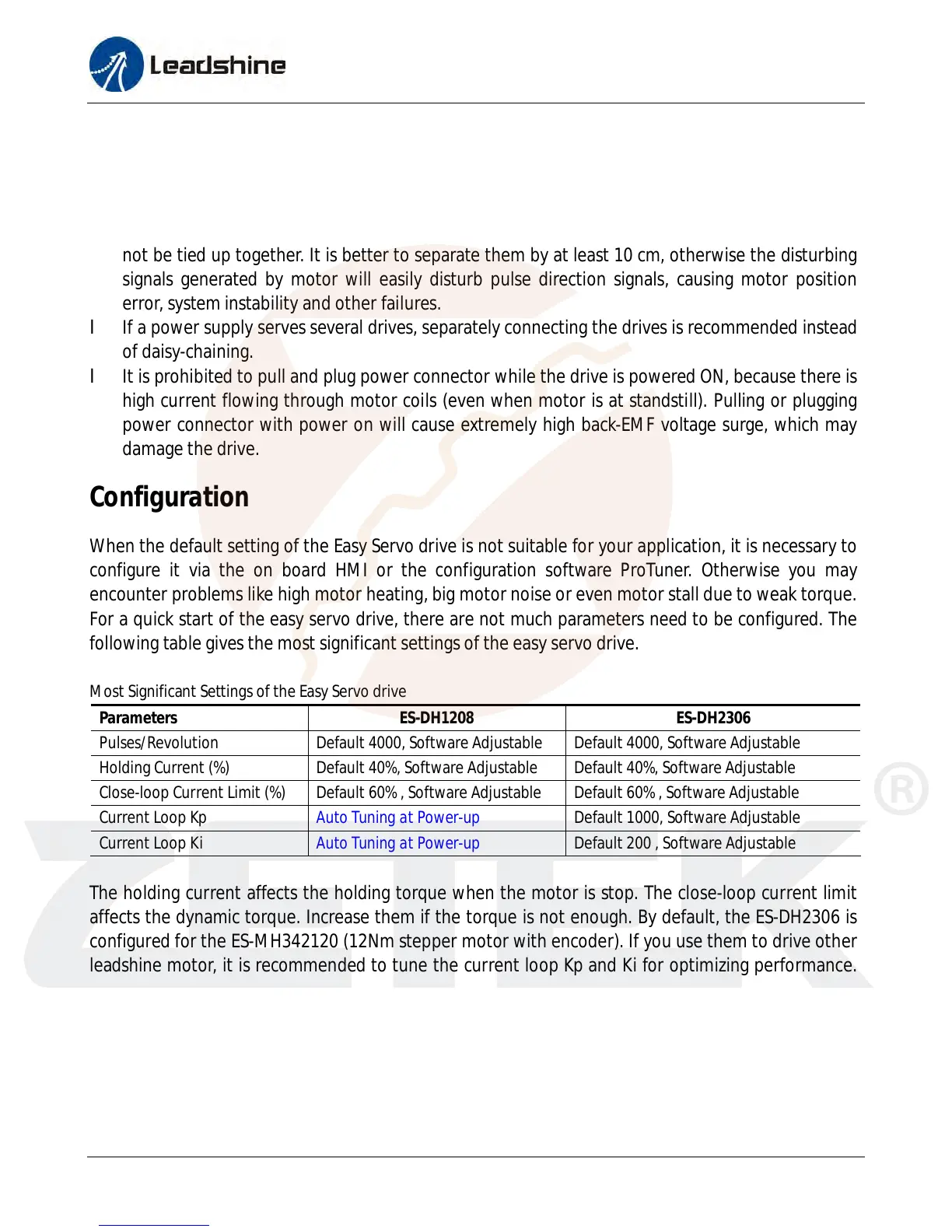 leadshine motor, it is recommended to tune the current loop Kp and Ki for optimizing performance.