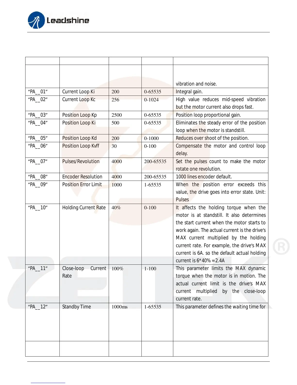 In this mode, the parameter is identified by the code “PA__XX” as shown in the following table.