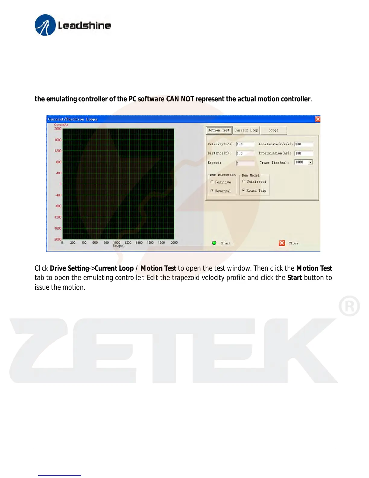 Click Drive Setting->Current Loop / Motion Test to open the test window. Then click the Motion Test