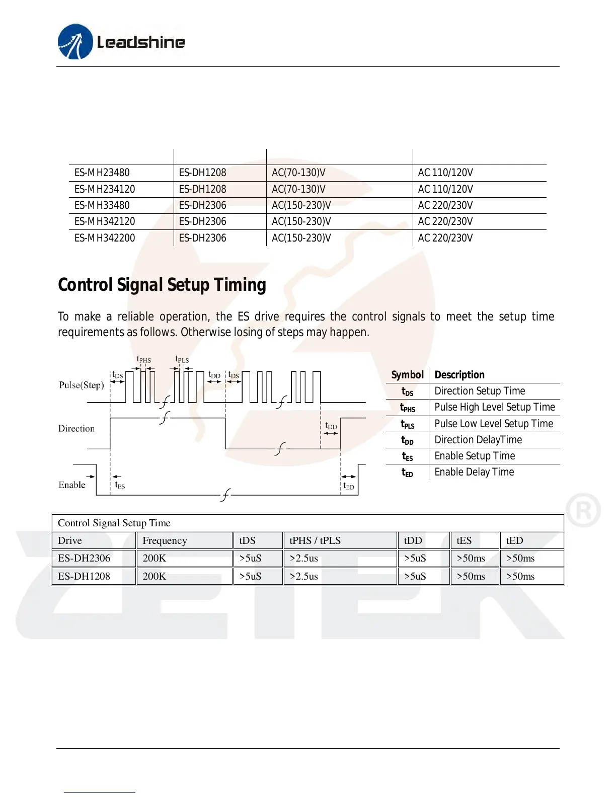 To make a reliable operation, the ES drive requires the control signals to meet the setup time