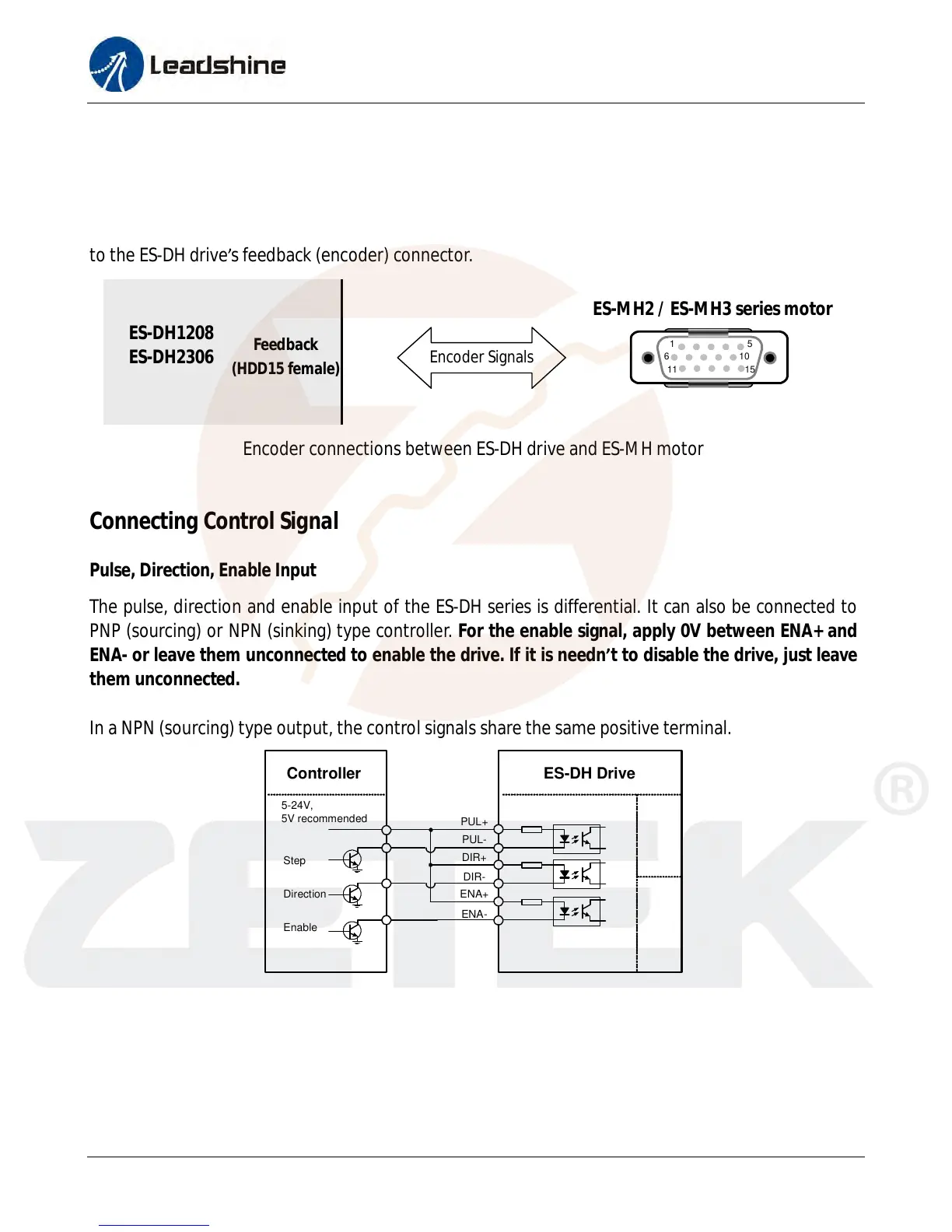 The pulse, direction and enable input of the ES-DH series is differential. It can also be connected to
