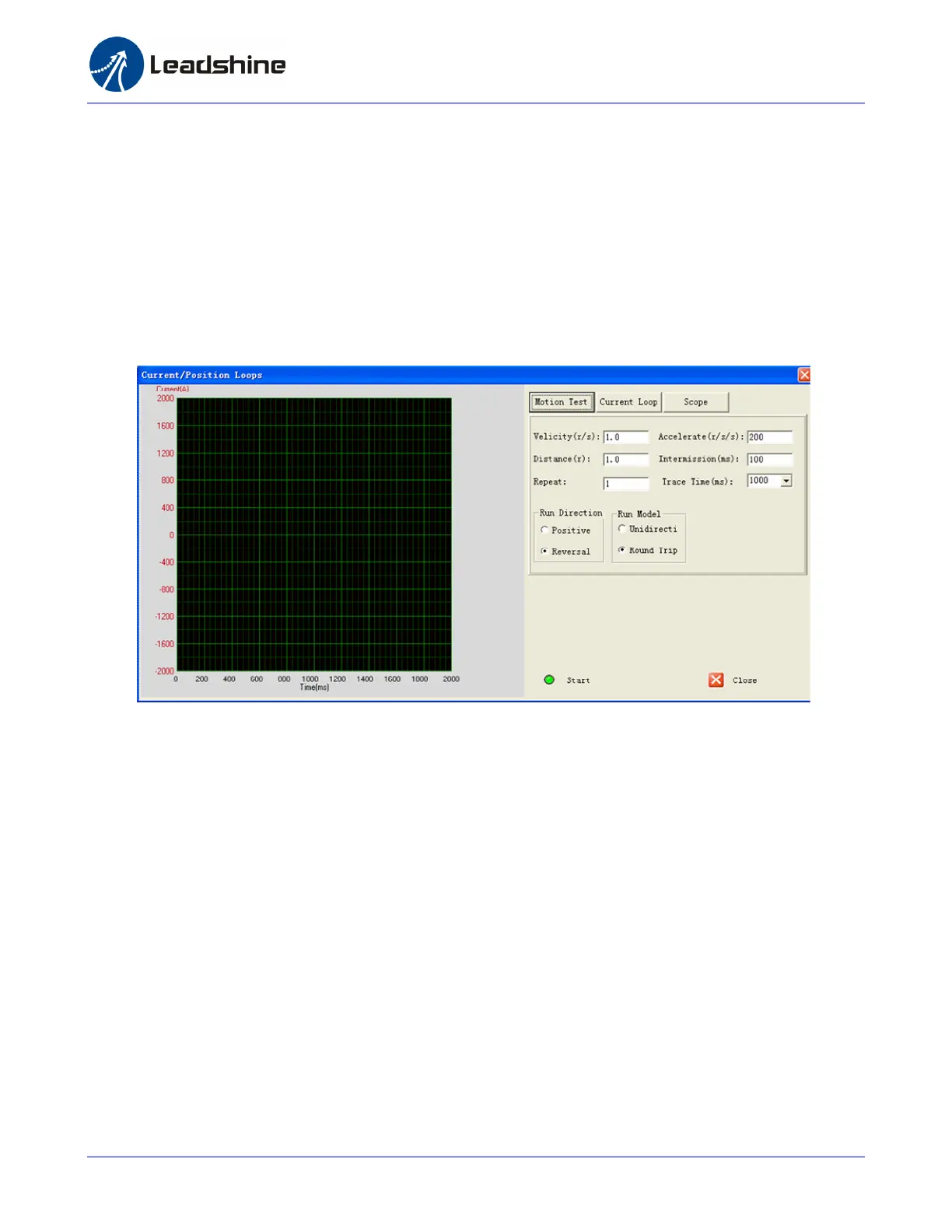 Click Drive Setting->Current Loop / Motion Test to open the test window. Then click the Motion Test