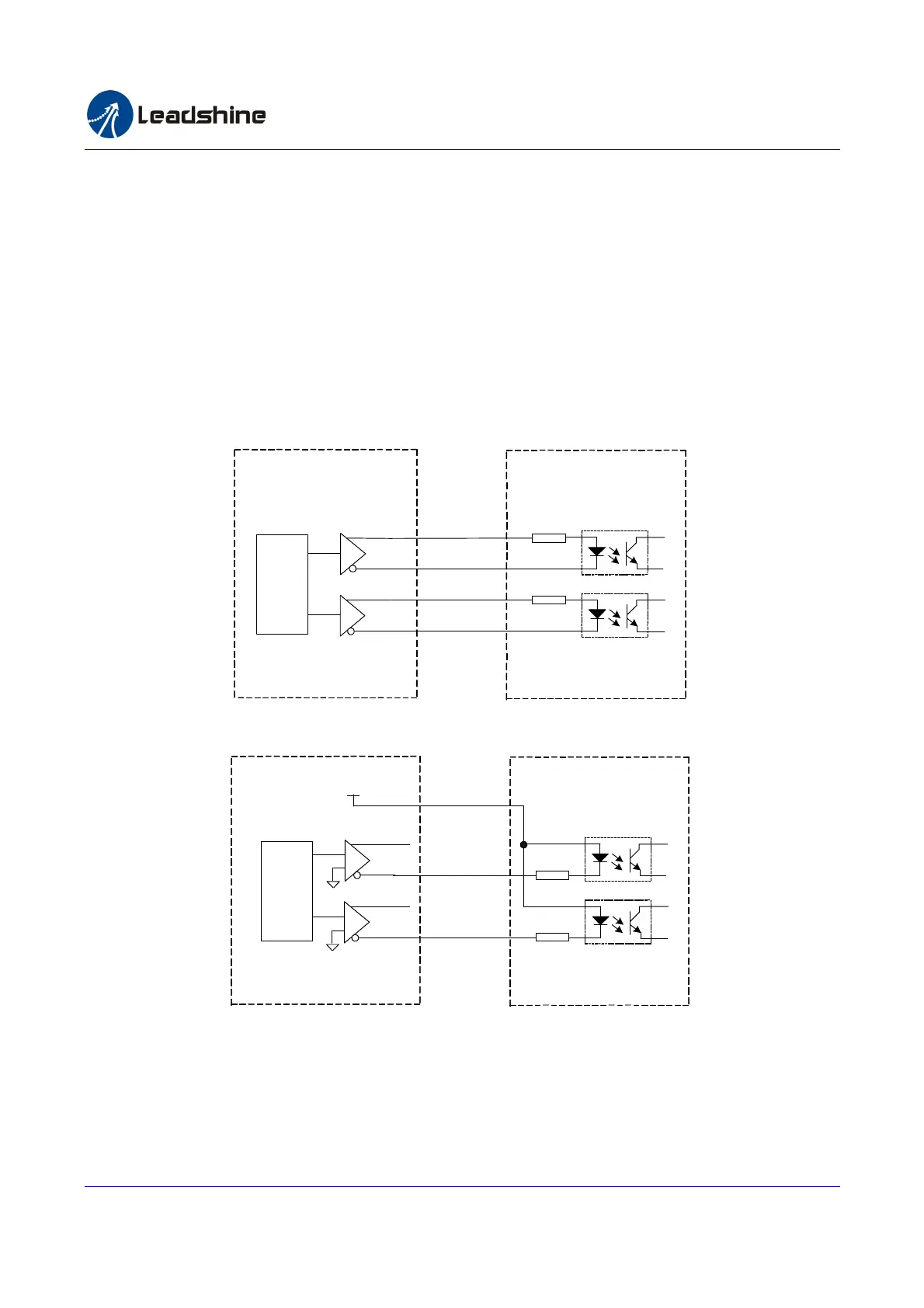 stepper drive is single-ended input, connect it as figure 3-2. Negative output and +5V are used in the single-ended