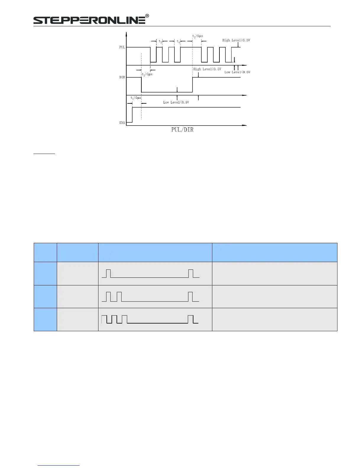b) t2: DIR must be ahead of PUL effective edge by 5s to ensure correct direction;