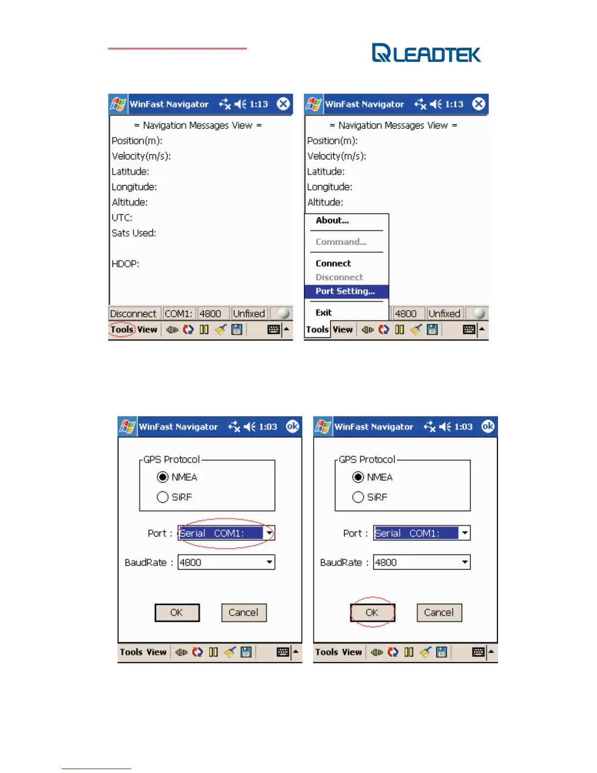 5. Dedicate a parallel port on your PDA to LR9450. For most PDAs, the port should be COM1.