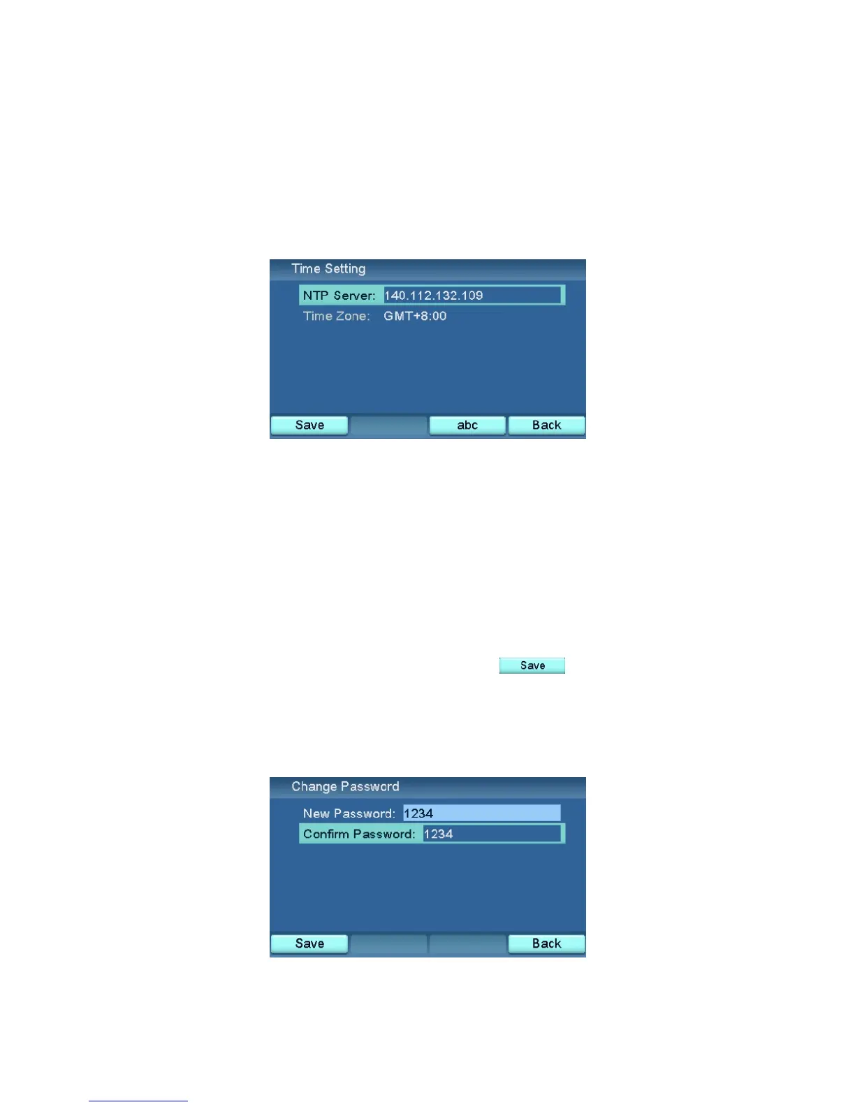 password twice for confirmation, and then press to save the change.