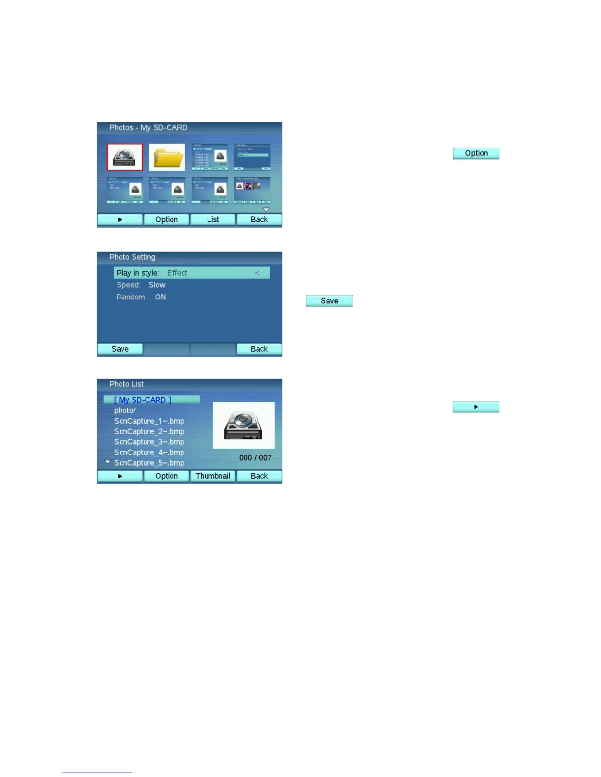 The operations for browsing the pictures in the USB device are essentially