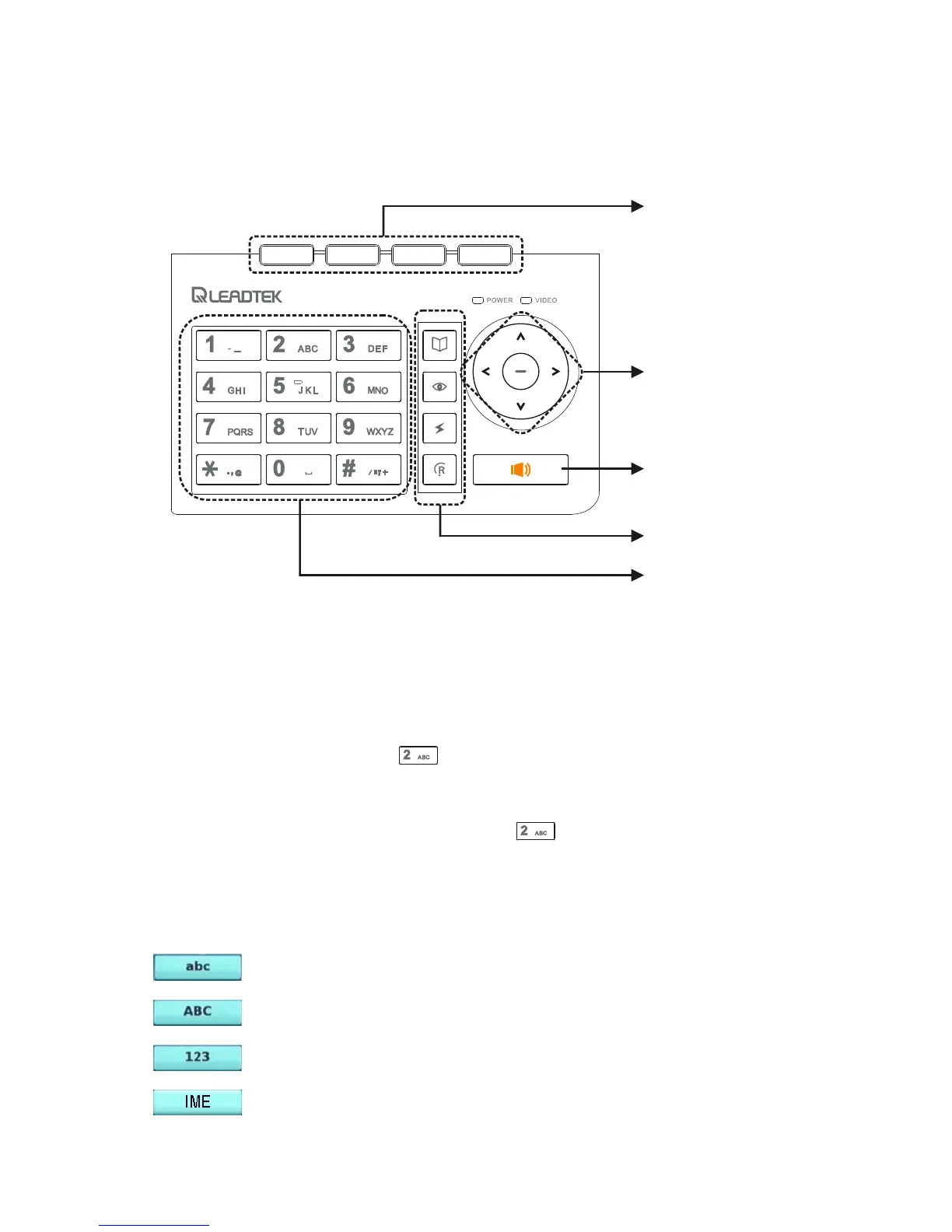 The numeric / alphabet / symbol keys are used for entering numbers, letters