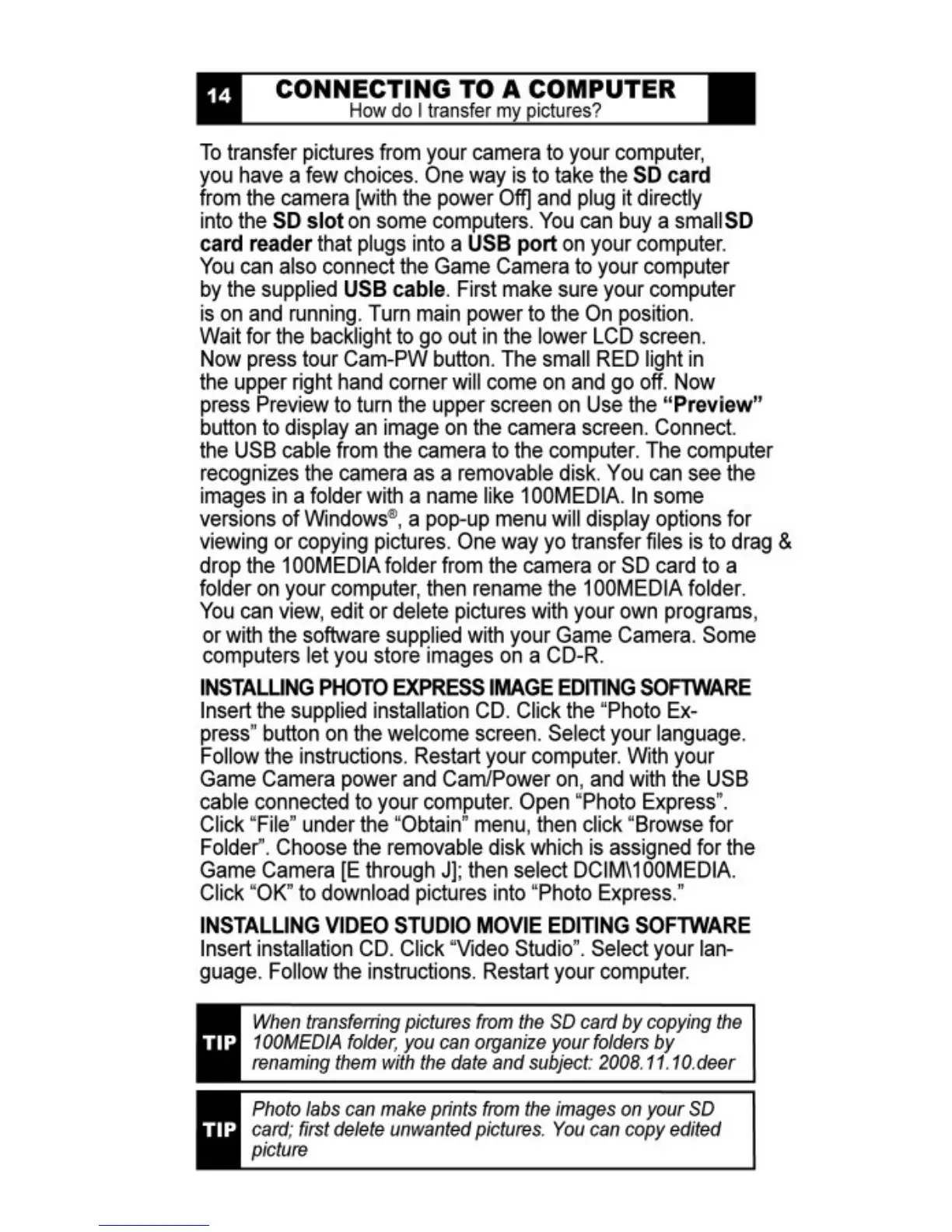 leaf river IS7SS - CONNECTING TO A COMPUTER; Picture Transfer Methods; Software Installation Guide