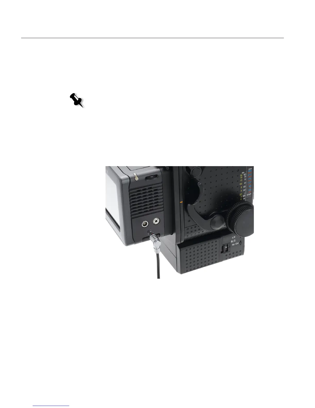 Note: Make sure the lever on the Camera Control cable is in O position.