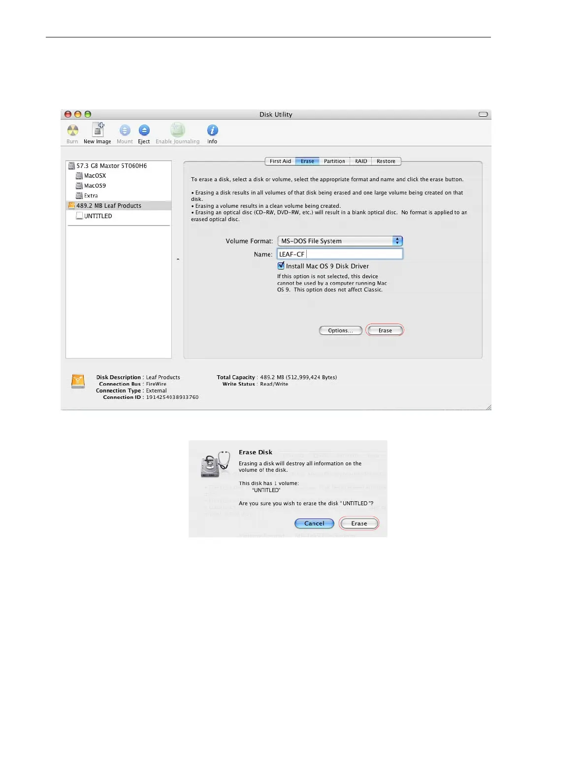 9. Click Erase.