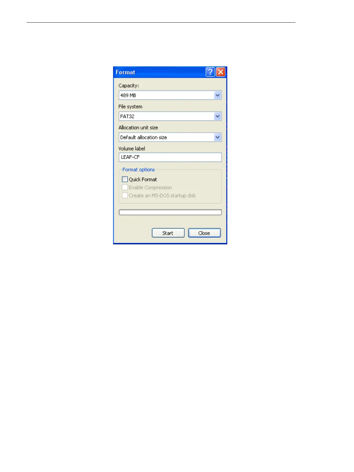 7. Ignore the Format options area, and click Start.