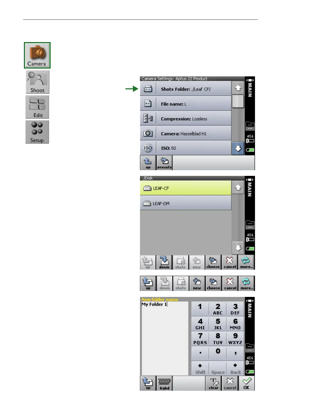 camera: digital magazine (Leaf DM) or compact flash (CF). To enhance