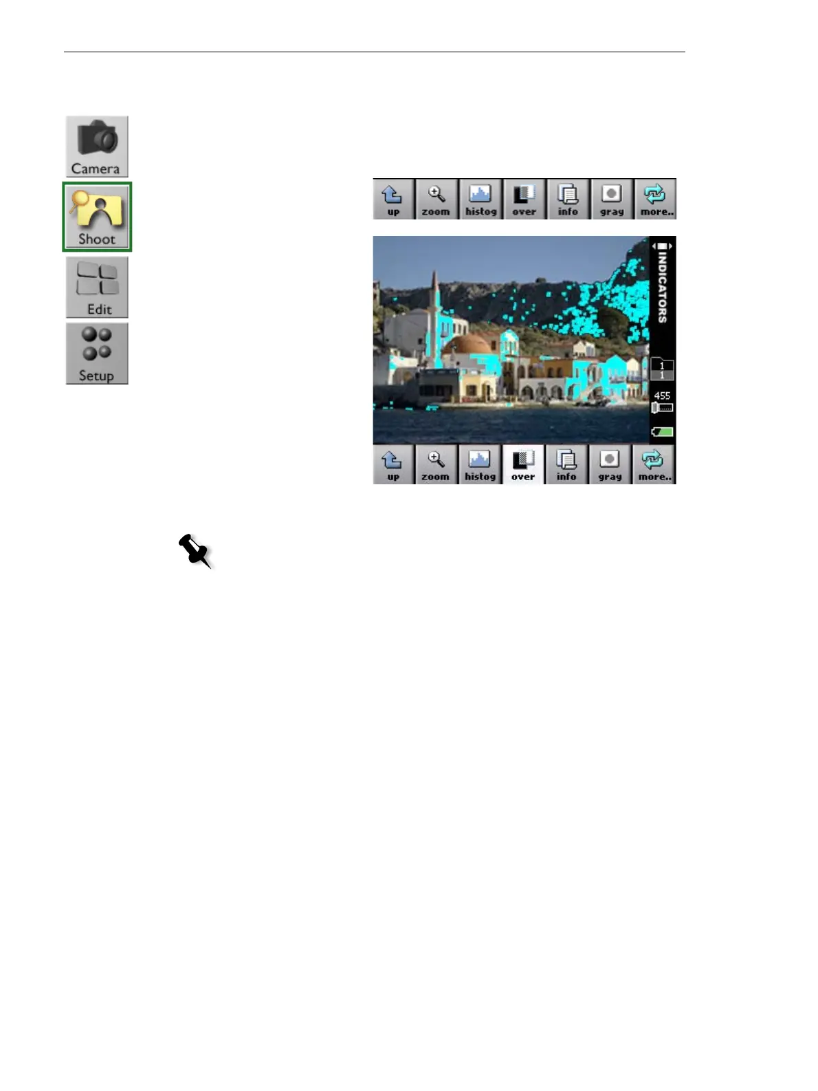 Note: It is possible to configure which exposure areas appear, overexposed or