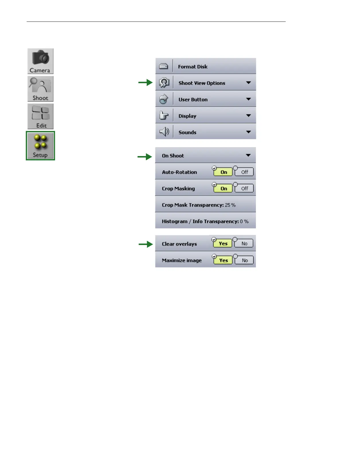 56 Chapter 8 – Adjust the Settings For a Shoot