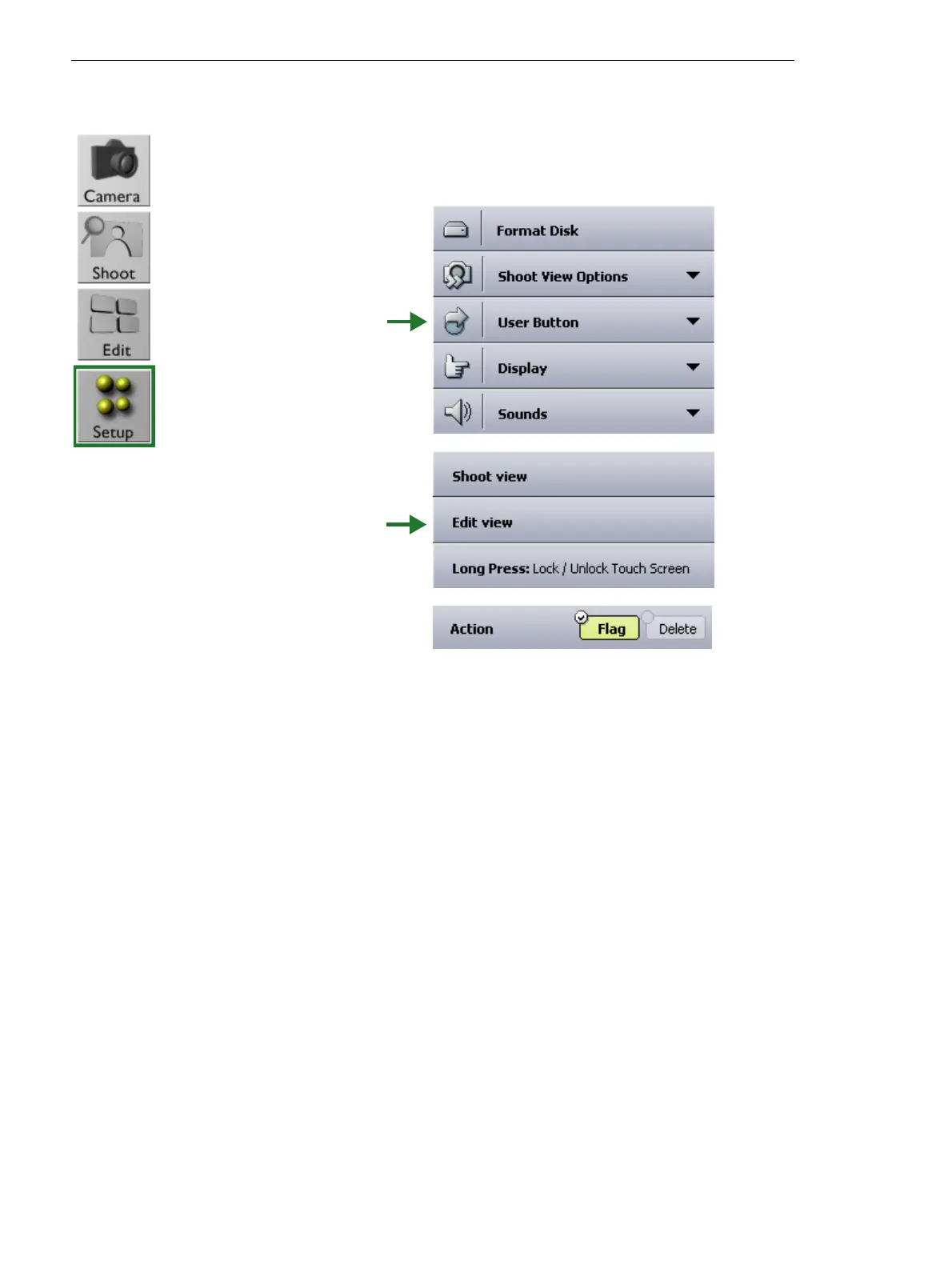 To configure the user button for flagging or deleting images: