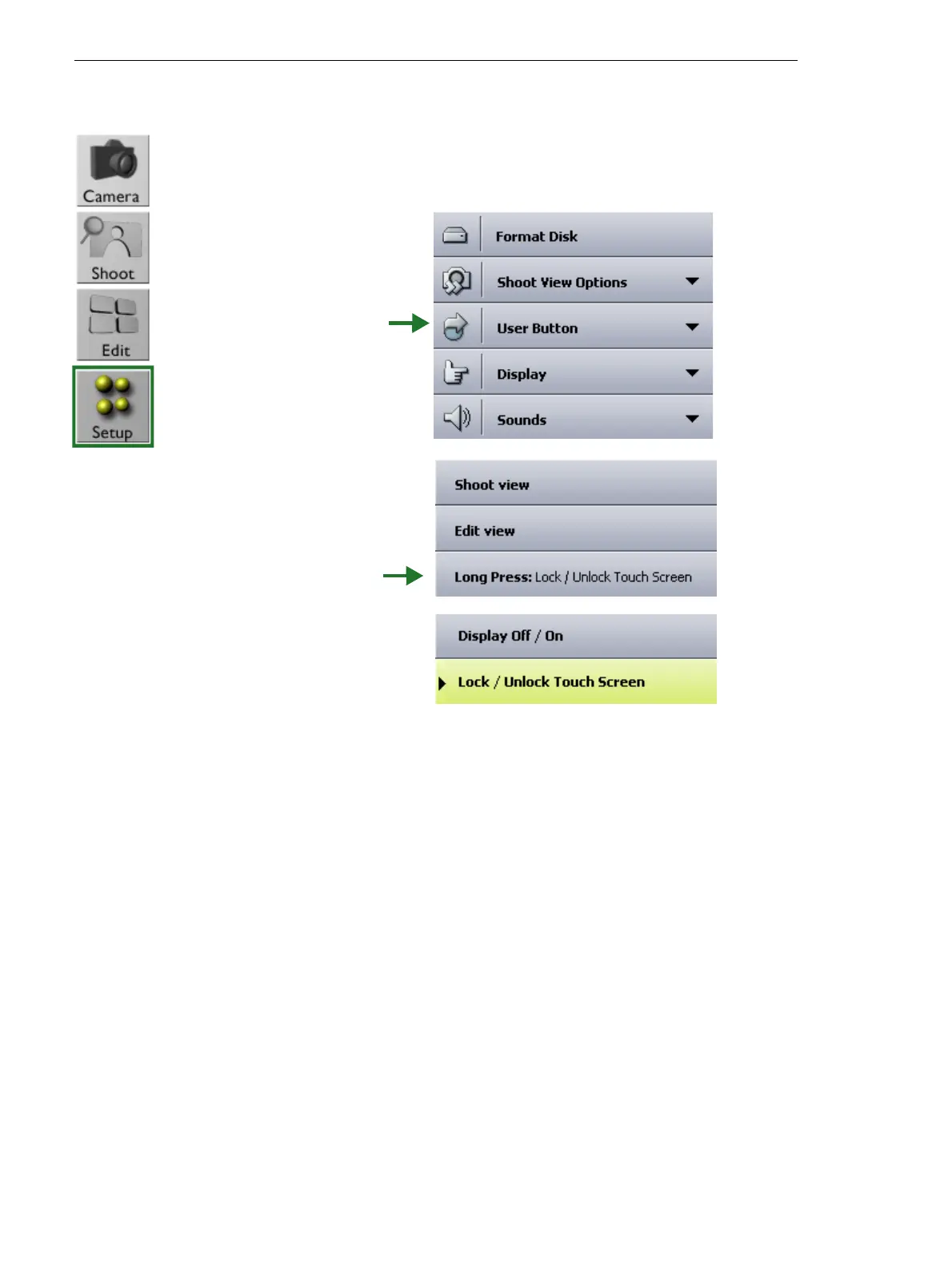 A long press on the user button can either lock or unlock the touch screen,