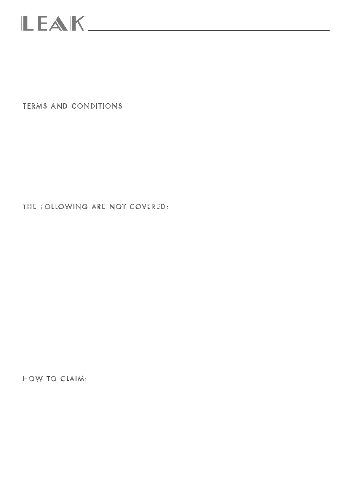 LEAK warrants this product to be free from defects in materials and workmanship, subject to the terms and conditions below. During the warranty period LEAK