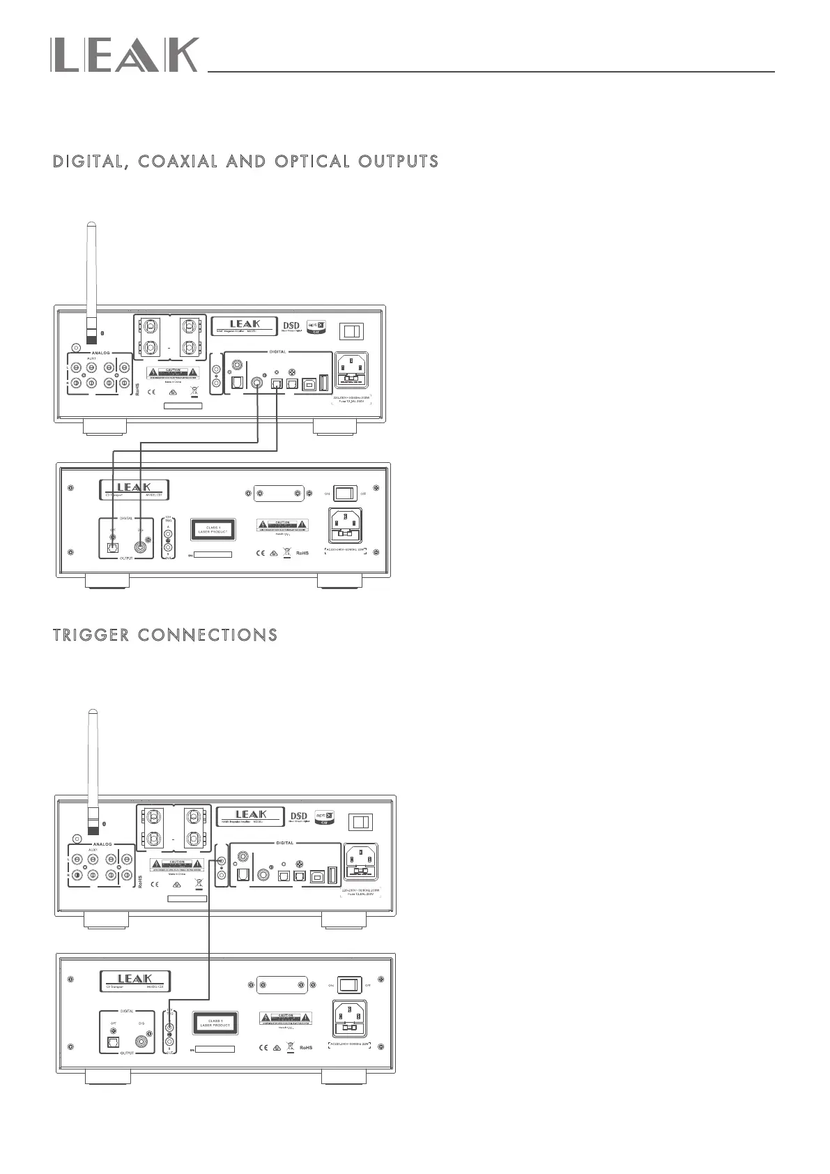 appropriate SPDIF output of the LEAK CDT to the input of a DAC or digital input on your amplifier or preamplifier, as per the example illustrated below.