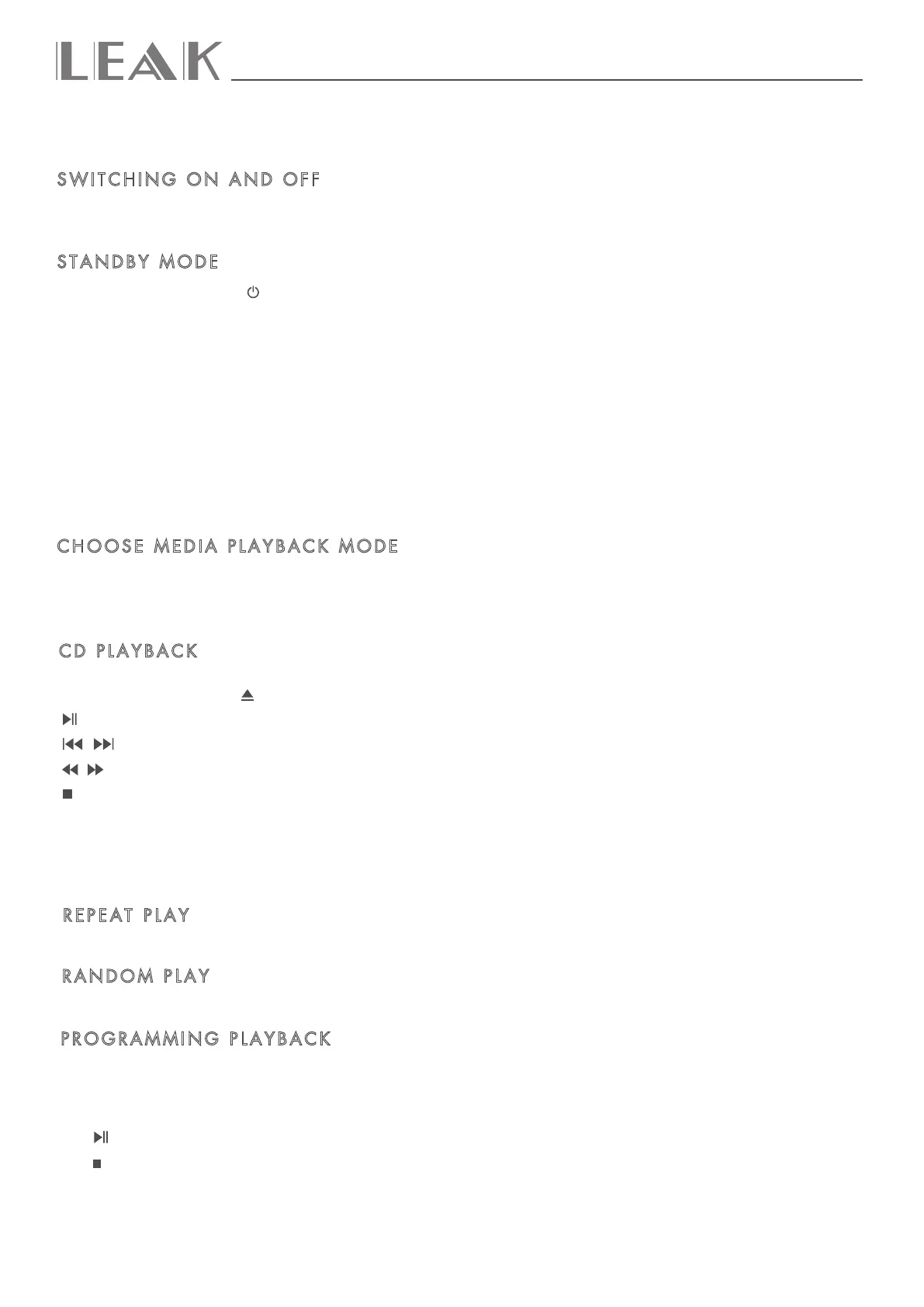 Press button to stop playing the programmed track. Once your programmed playback order is finished, the LEAK CDT will stop. Press the stop button