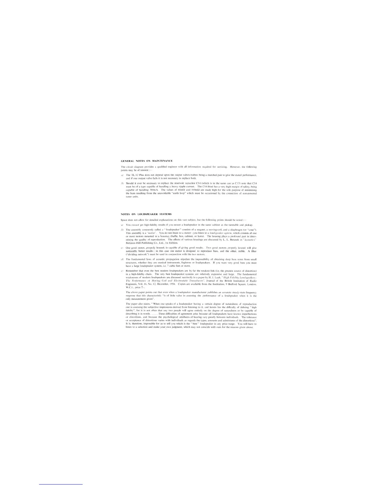 Leak TL12 Plus - General Notes on Maintenance and Loudspeaker Systems; Maintenance Notes; Loudspeaker System Performance Factors