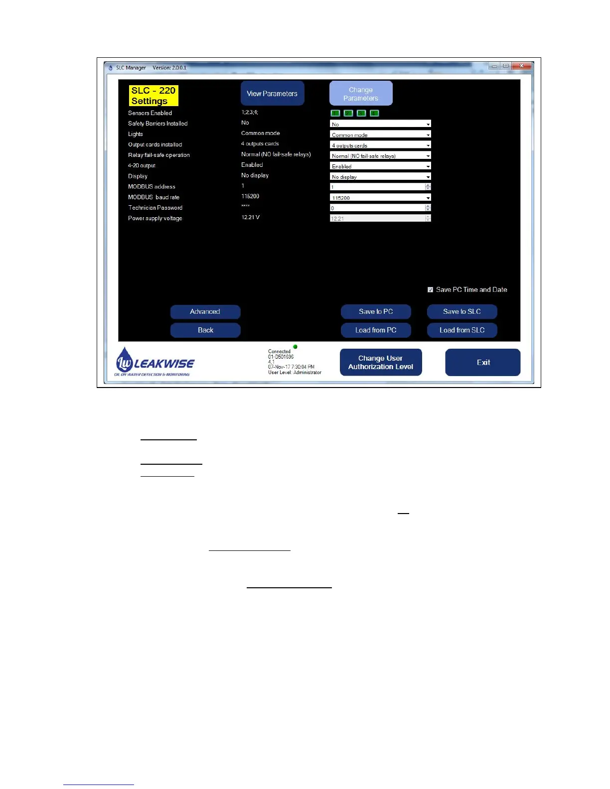10. MODBUS Address: Individual address for each SLC-220 unit when connected to a