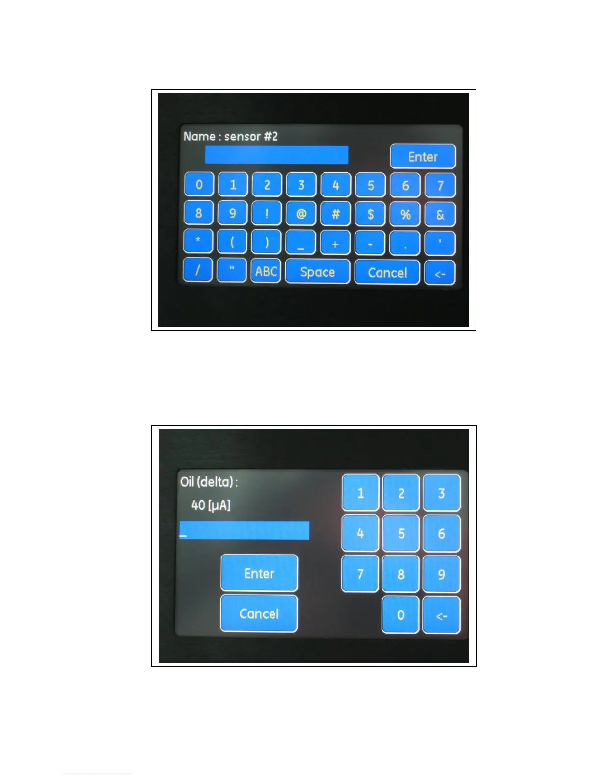 When a numeric parameter is edited, a numeric keypad appears: