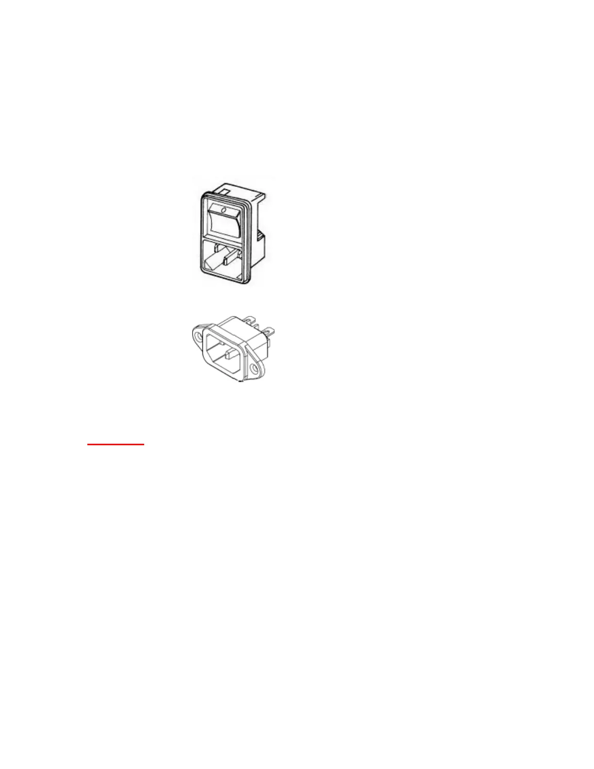 (red) and uplift peddles (white) as well as the power cord entry socket (black with
