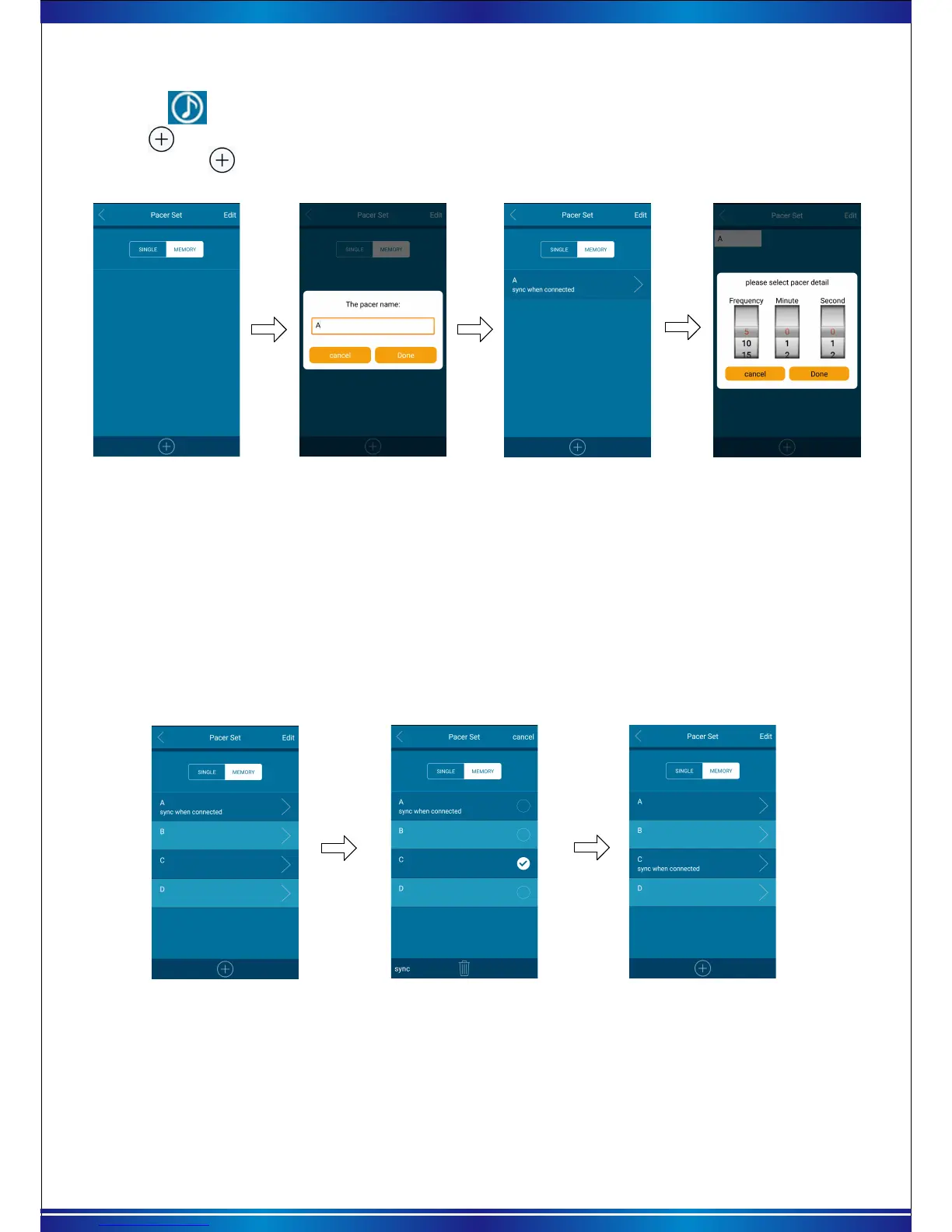 When there are many “pacer names” on the app, Click “edit”at right of corner to select the setting