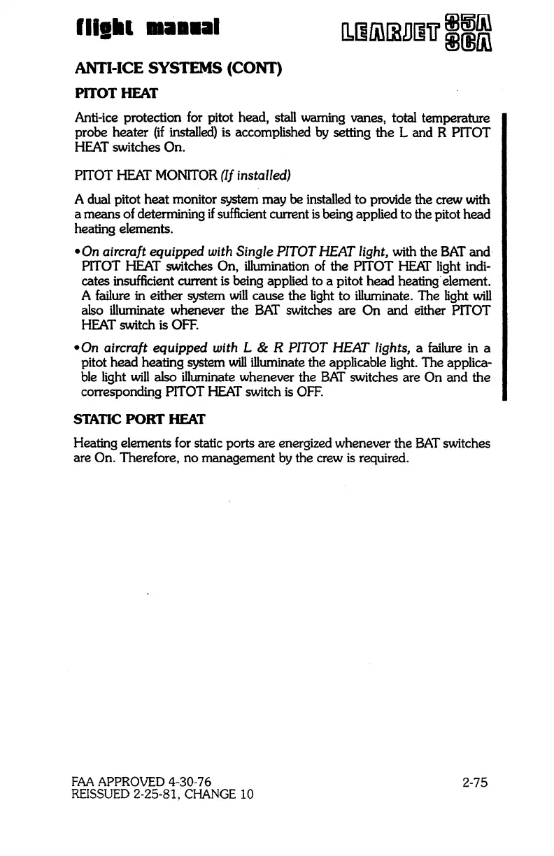 aircraft equipped with L & R PITOT HEAT lights, a failure in a