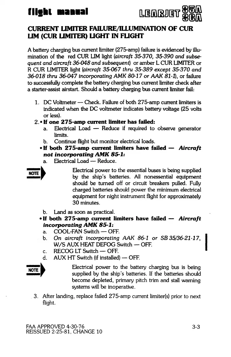3. After landing, replace failed 275-amp current limiter(s) prior to