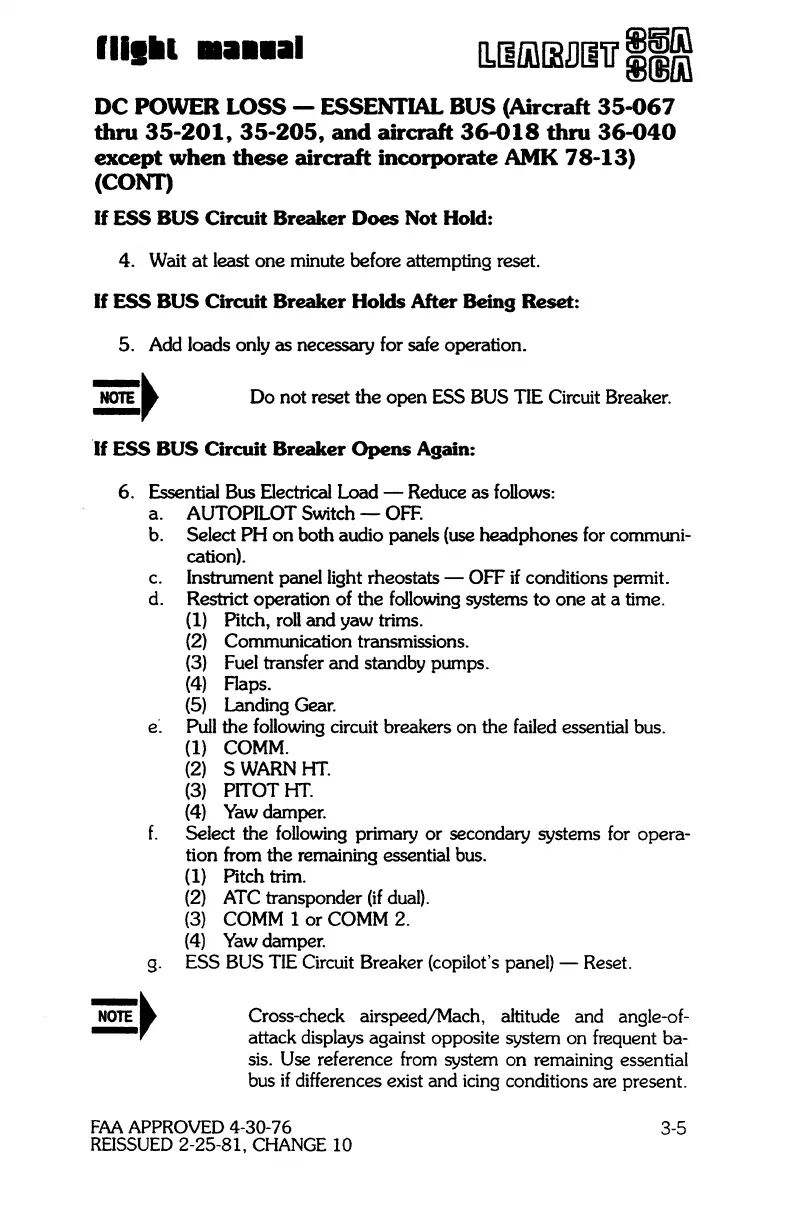 circuit breakers on the failed essential bus.
