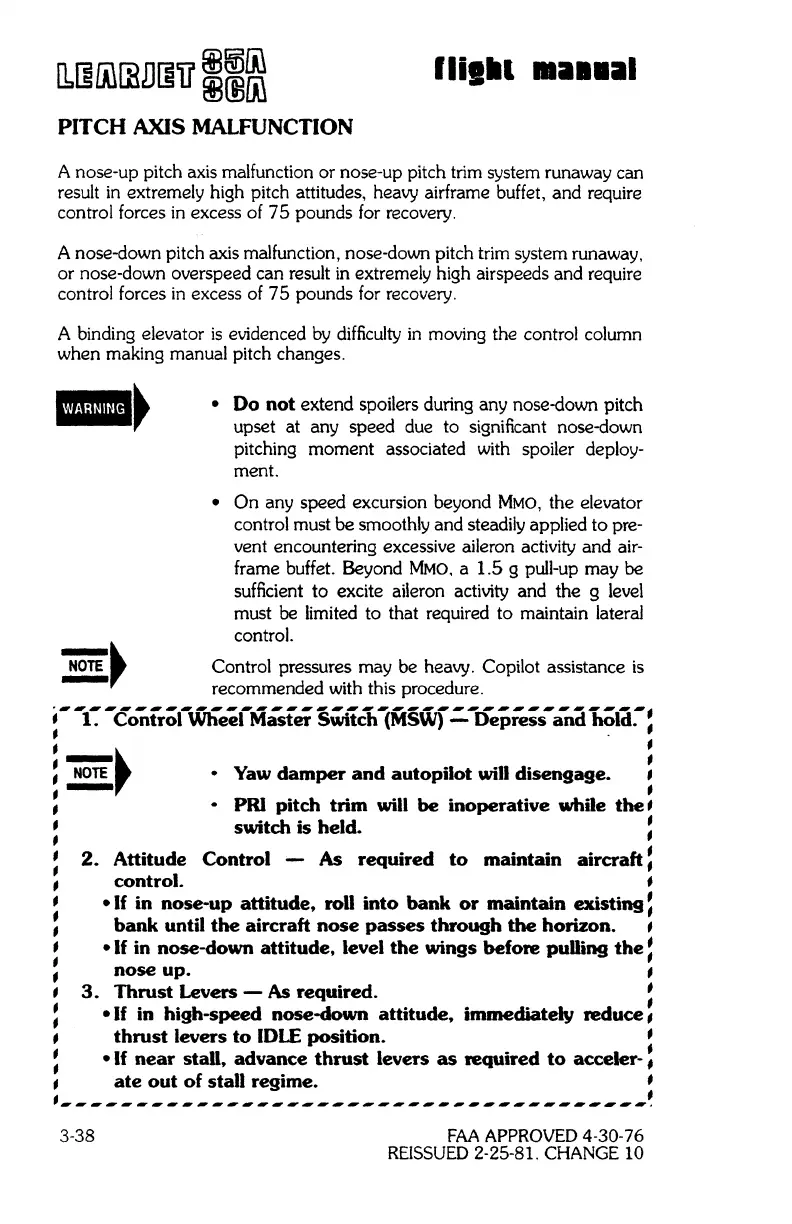 A nose-up pitch axis malfunction or nose-up pitch trim system runaway can