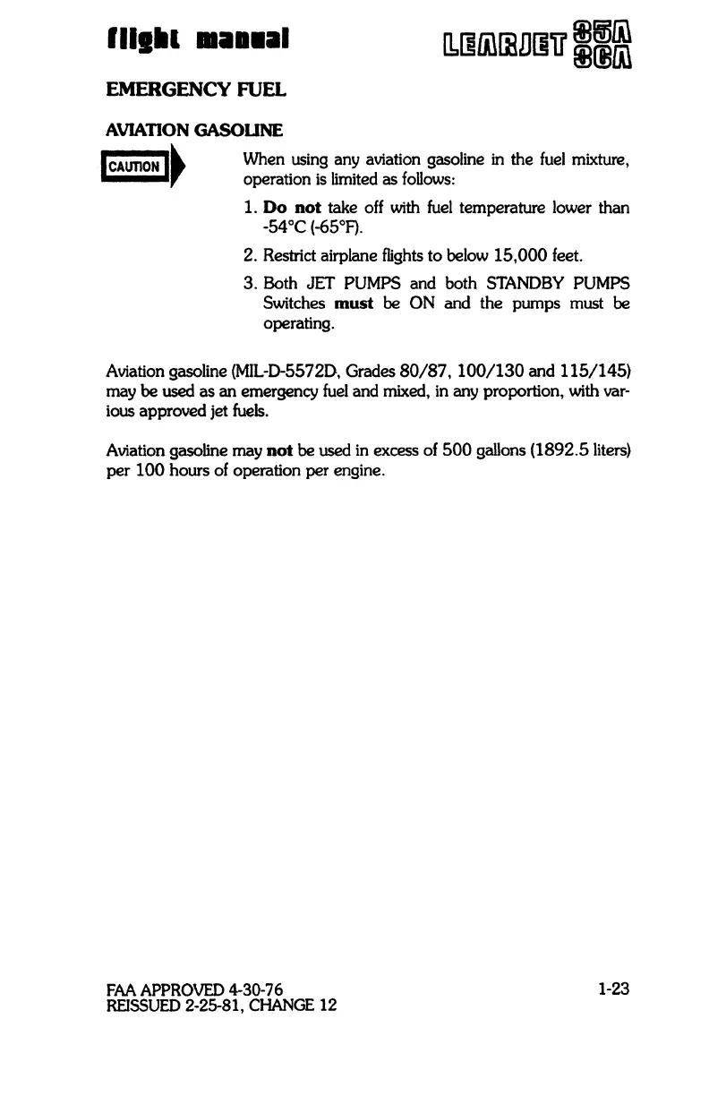 Learjet 35A - Emergency Fuel; Aviation Gasoline
