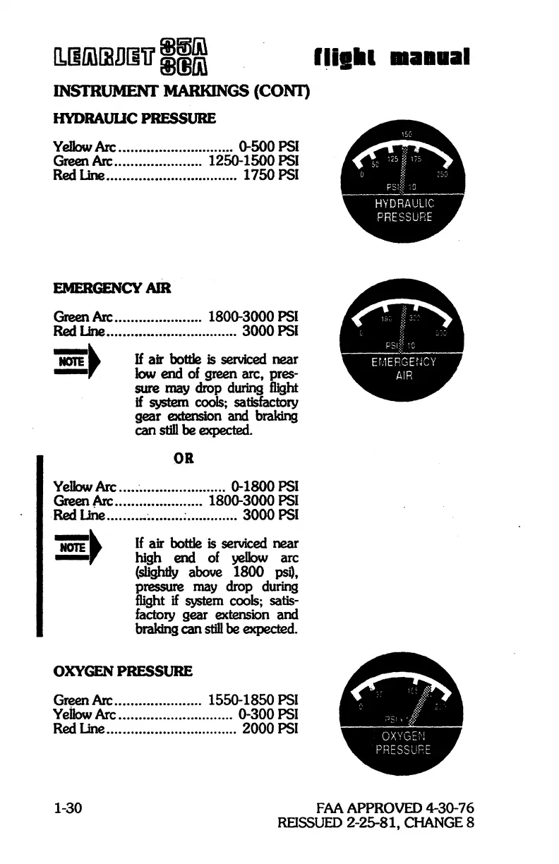 Learjet 35A - Hydraulic Pressure; Emergency Air; Oxygen Pressure