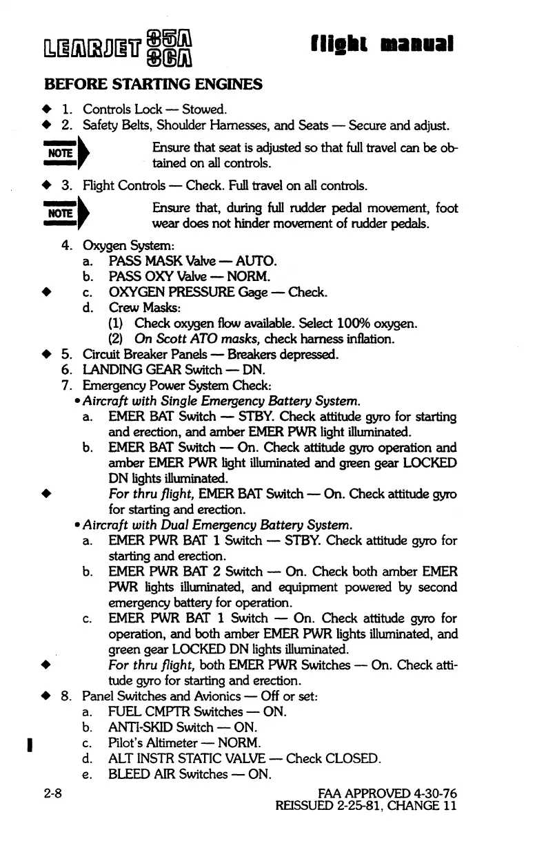 2. Safety Belts, Shoulder Harnesses, and Seats - Secure and adjust.