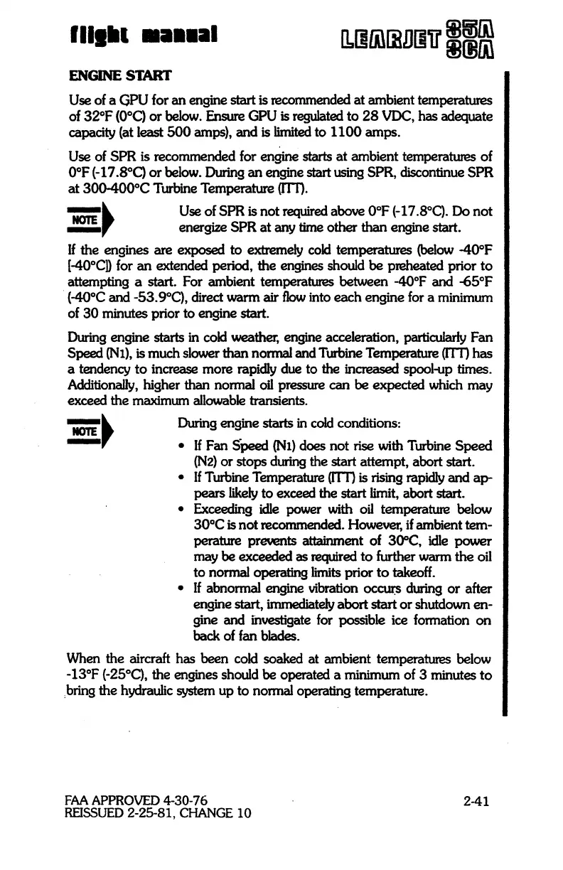 -13°F (-25°C), the engines should be operated a minimum of 3 minutes