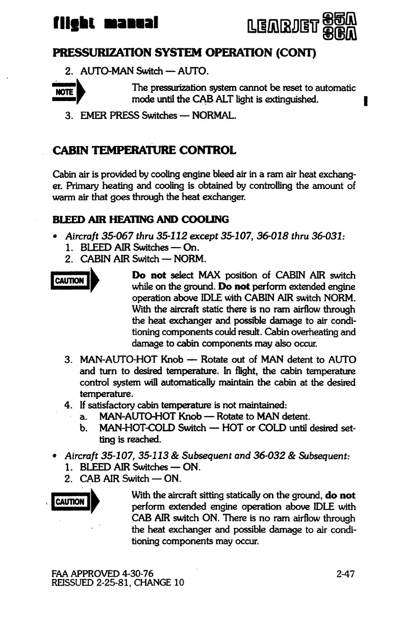 Aircraft 35-107,35-113 & Subsequent and 36-032 & Subsequent: