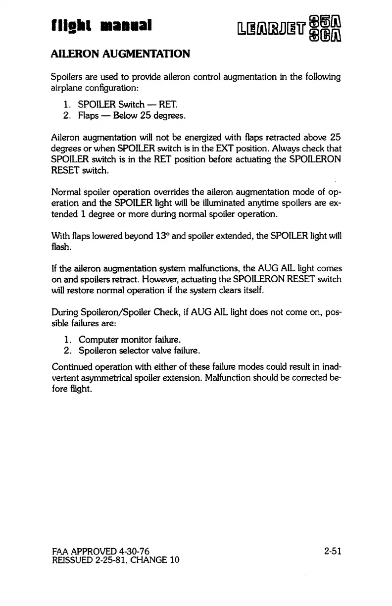 and spoilers retract. However, actuating the SPOILERON RESET switch